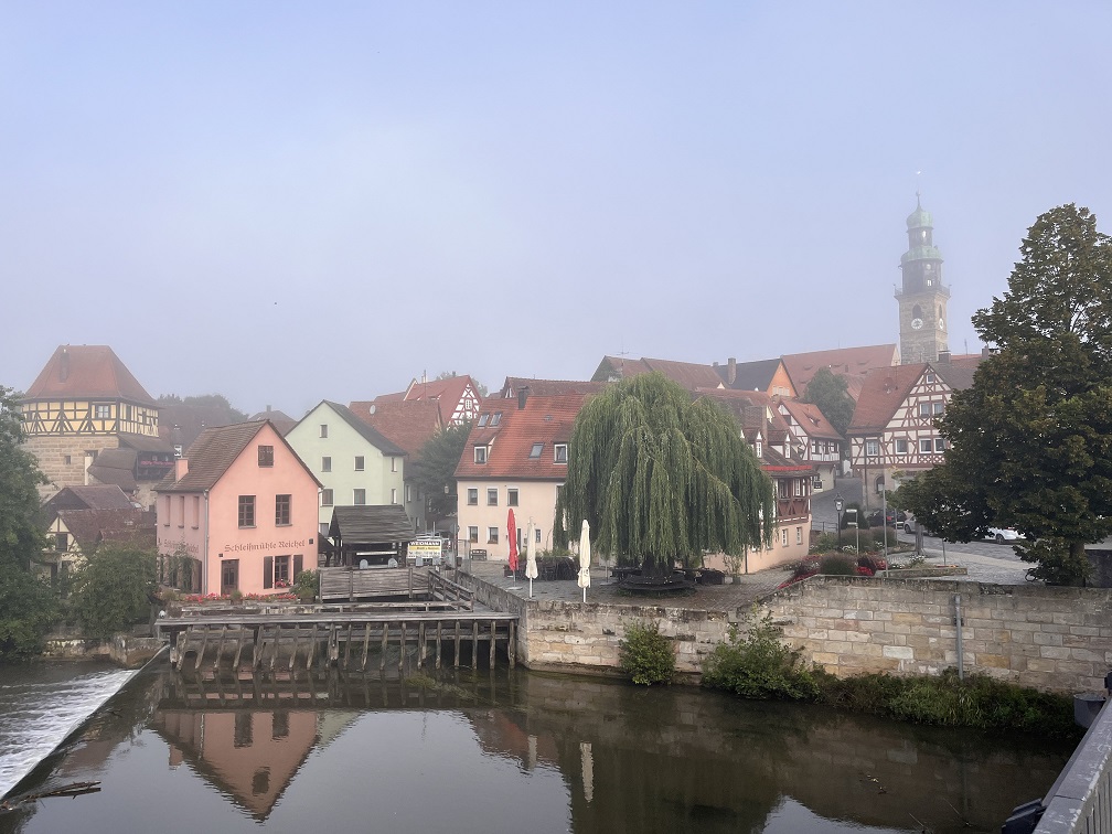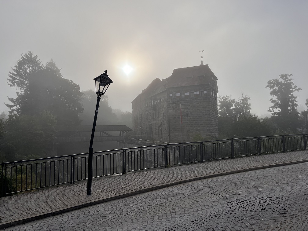 Als ich morgens nach Lauf komme ist die Stadt noch in eine Hauch Nebel gehüllt und bietet ein wunderschönes Bild. Bevor es also losgeht mit der Arbeit, laufe ich zur Bücke und mache noch ein paar Bilder.