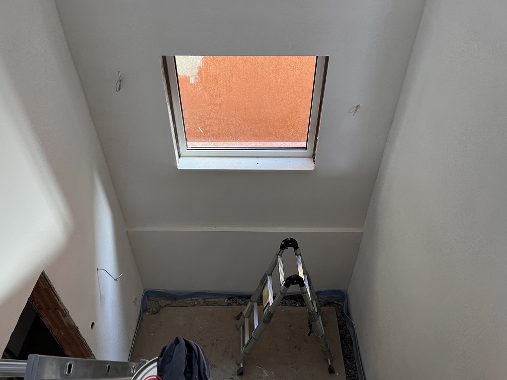 Allerdings auch nicht einfach, da im Treppenhaus große Leere herrscht und nur per Leiter ins OG zu gelangen ist.