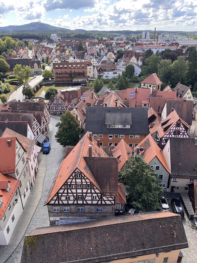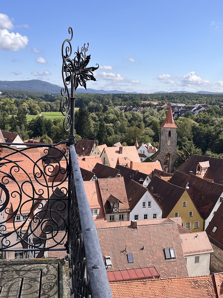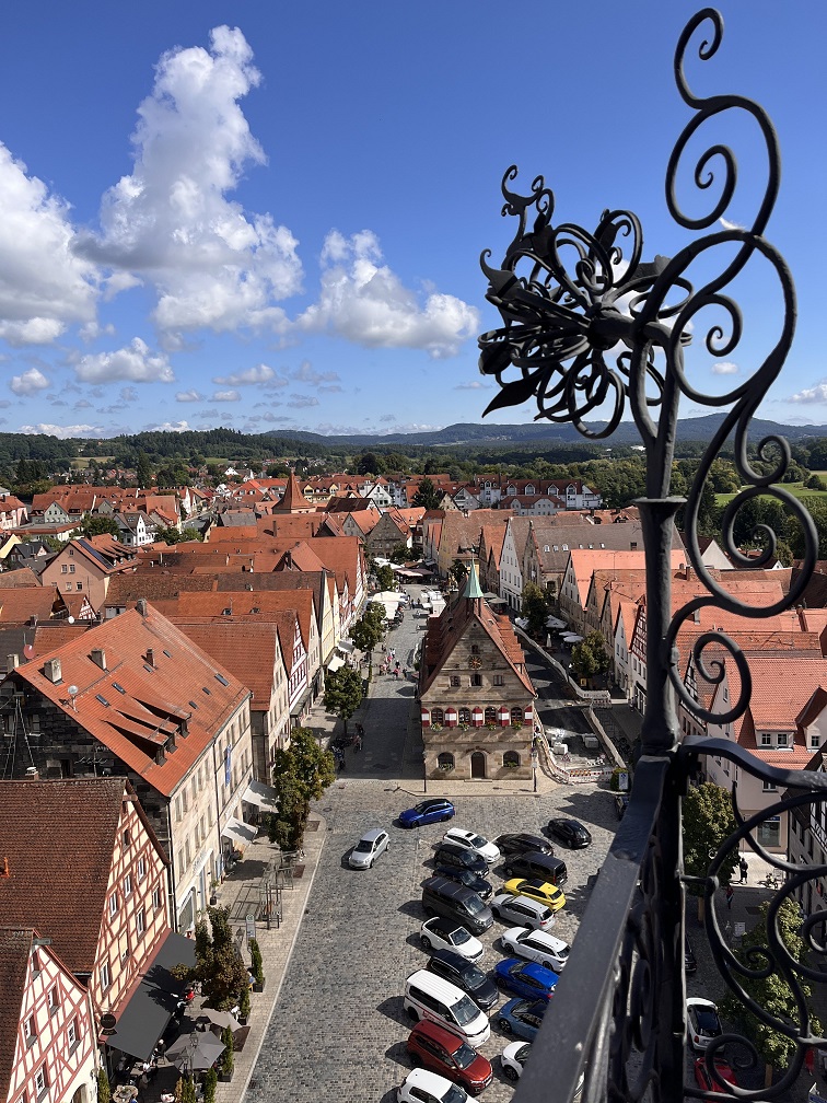 Mittags hole ich mir im Ort was zu Essen und habe zufällig die Gelegenheit auf den Kirchturm zu steigen. Ein super Erlebnis bei herrlichem Wetter.